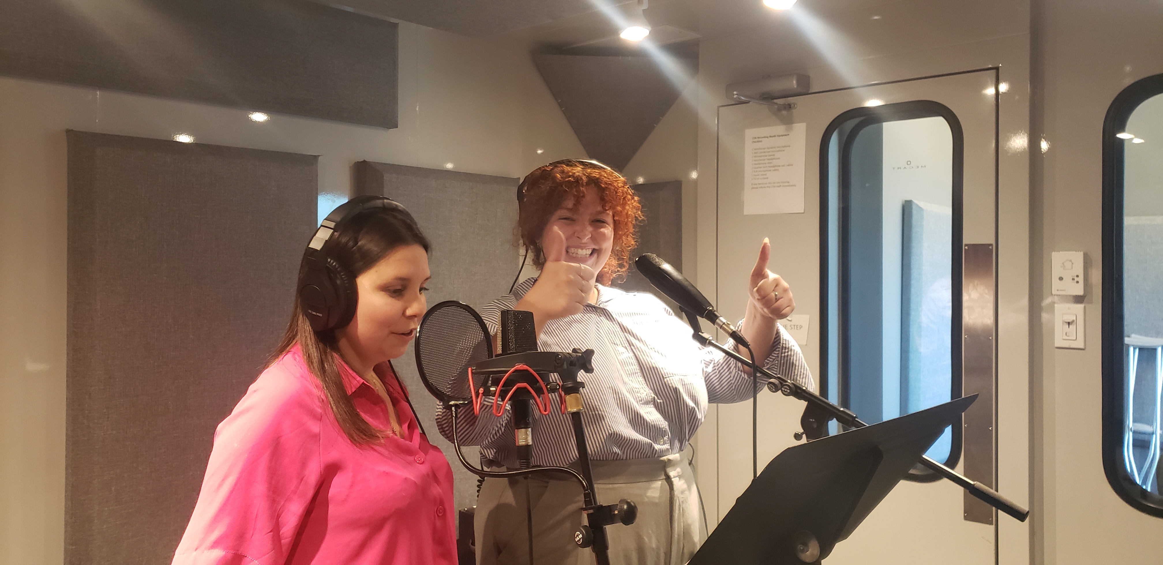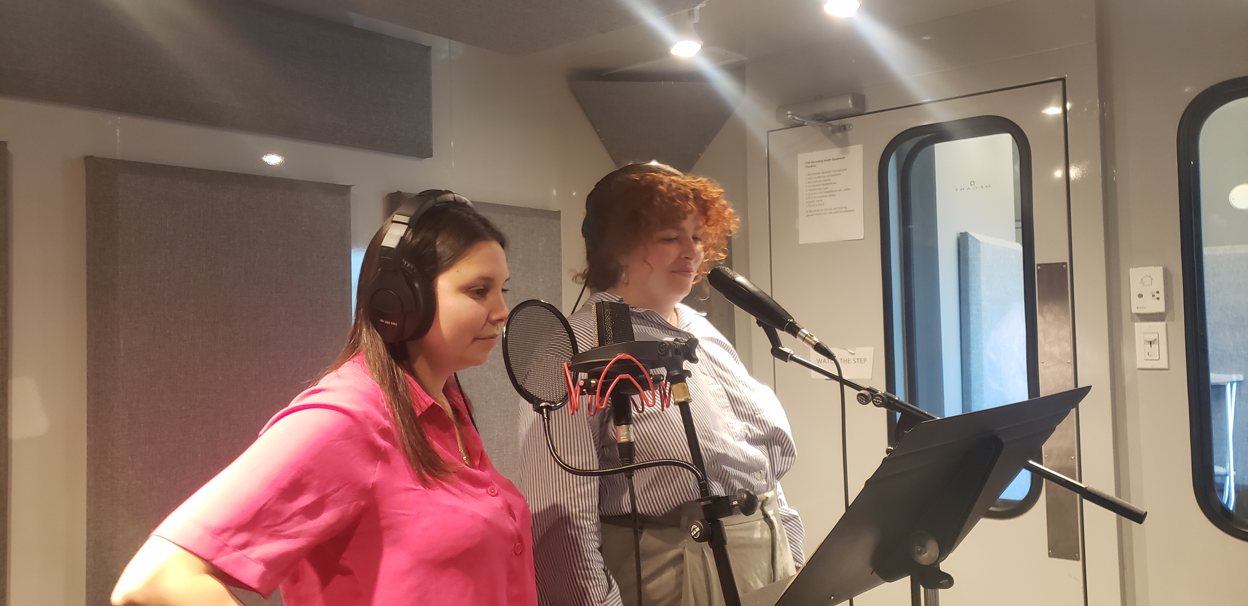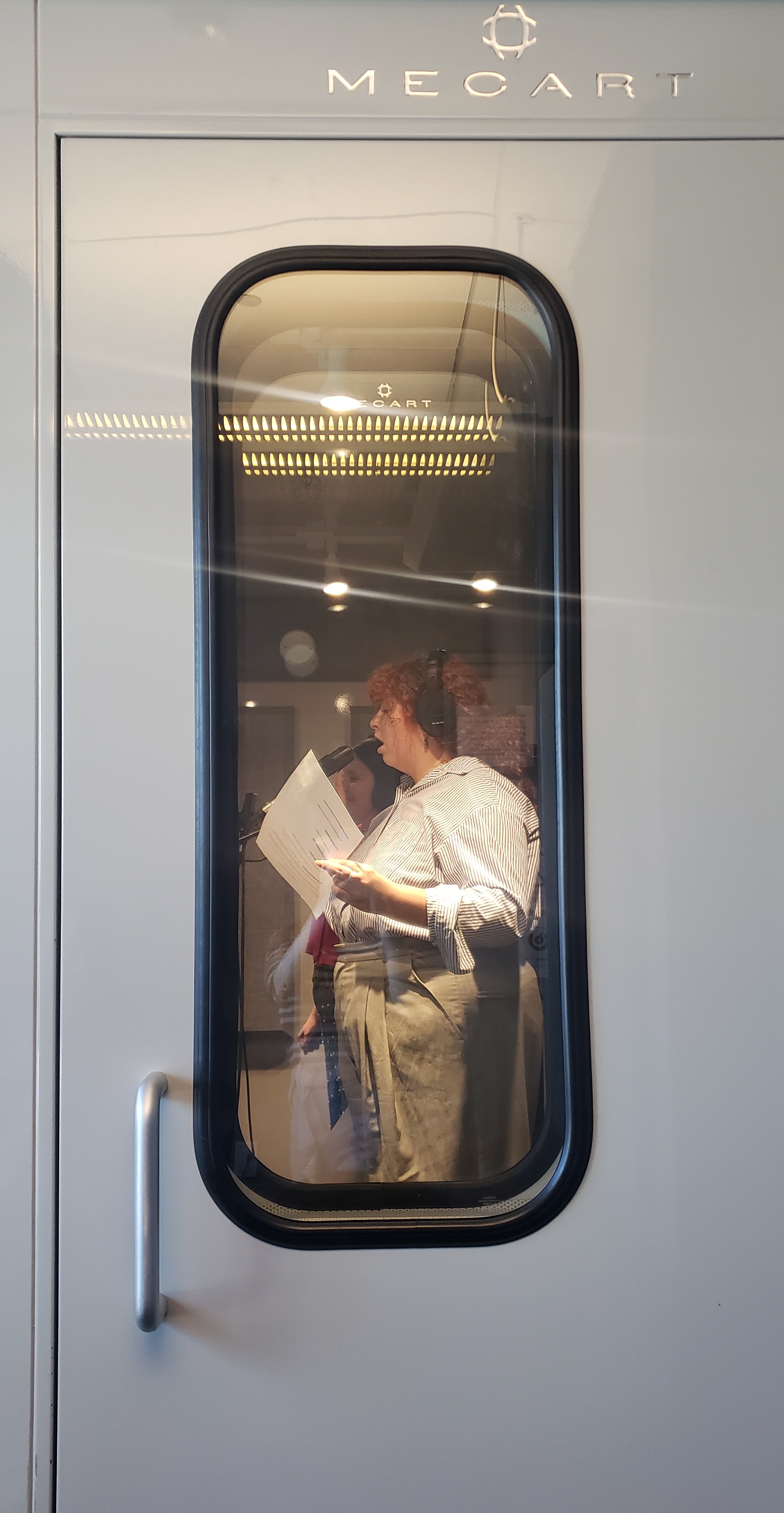 Il y a quelques semaines, j’ai écrit aux comédiennes Rosalie Gobeil et Léa Carle-Bachand qui ont accepté de donner leur voix à mes personnages. Suite à une rencontre téléphonique avec chacune, j’ai réservé un studio au pavillon EV pour le vendredi 17 octobre. En amont de l’enregistrement, j’ai accéléré l’écriture des dialogues et le montage de mon animatique afin d’être bien préparée.