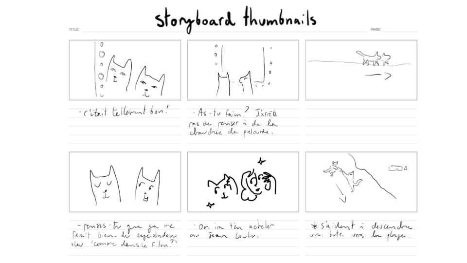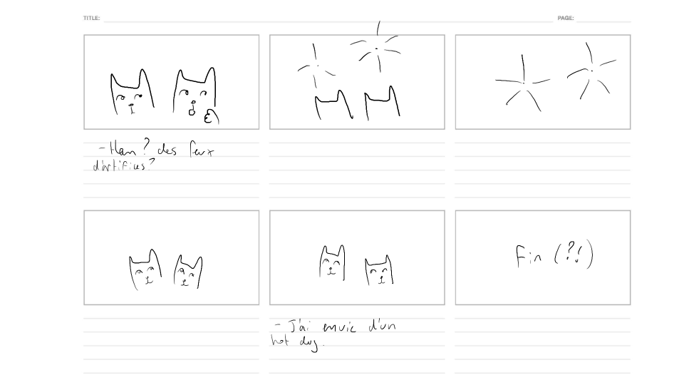 Nous avons commencé par regarder la première version de mon animatique, puis nous avons procédé à la lecture des dialogues sans enregistrement. Ensuite, Rosalie et Léa m’ont suggéré d’intervenir lorsque je voulais des modifications.